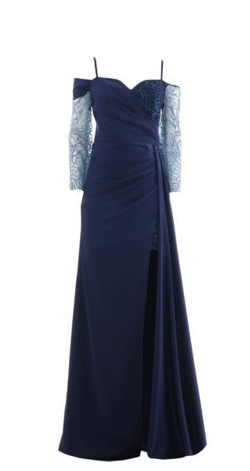 Abito Lunghezza: lunga Scollo a cuore Dettagli: maniche in pizzo, spacco laterale, drappeggio sul fianco...