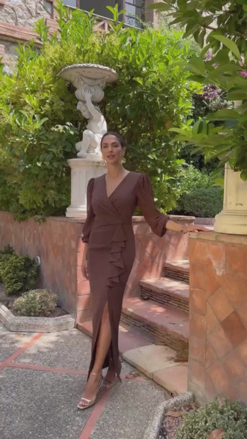 Abito Lunghezza: lungo Scollo: a V Modello : stretto Dettagli: rouches sullo spacco, cinturina in...