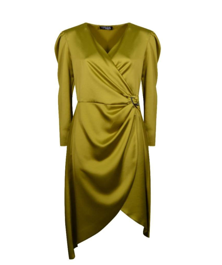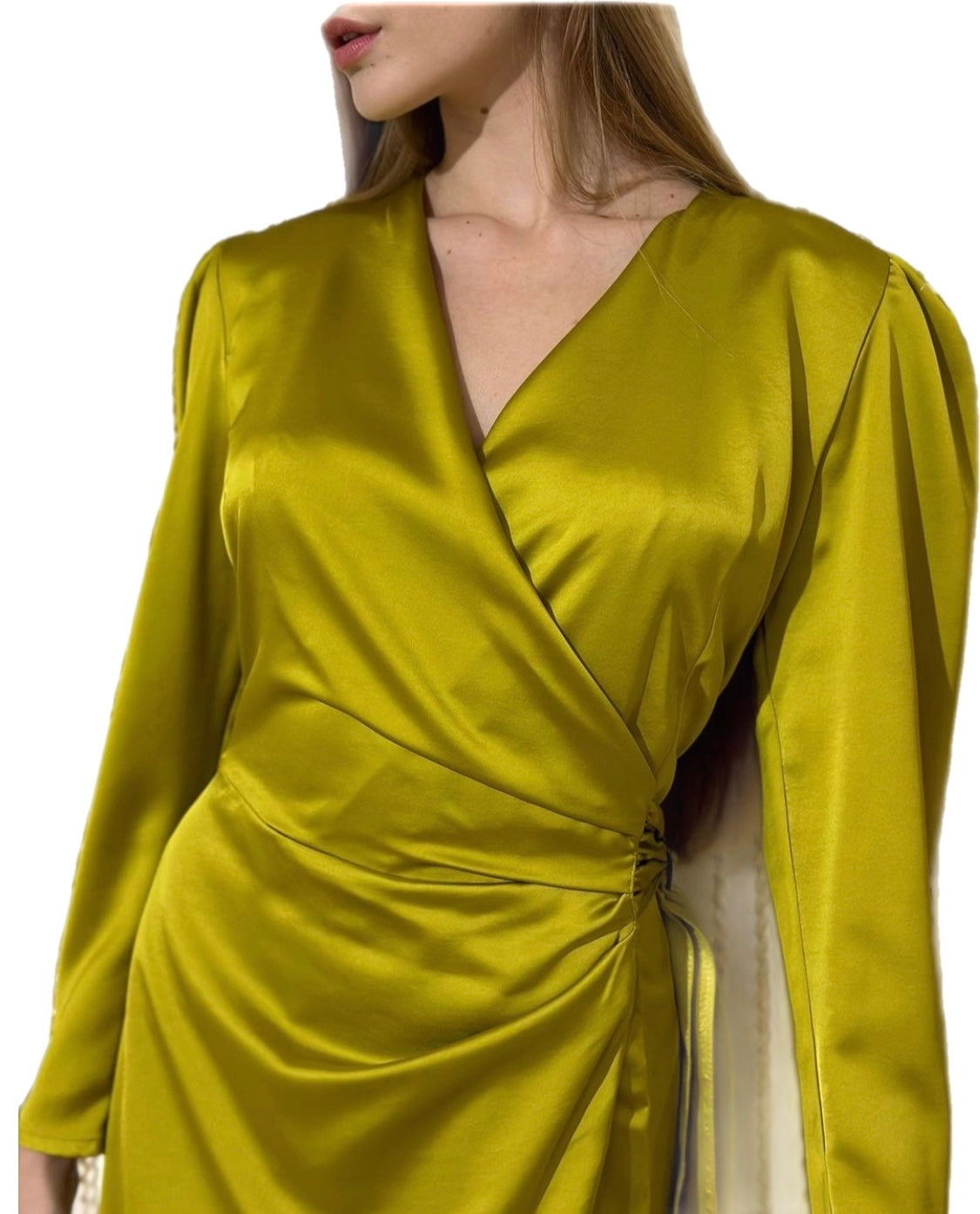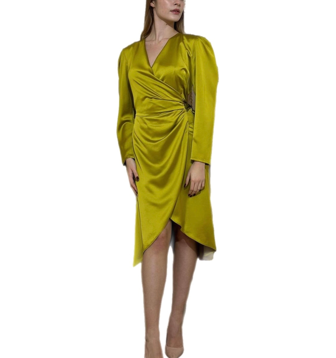 - Un abito ricco di stile e dettagli sofisticati. Realizzato i raso lucido, ha una linea a portafoglio che adorna le figure delle donne. Una scelta perfetta per le serate eleganti. Disponibile anche nero.