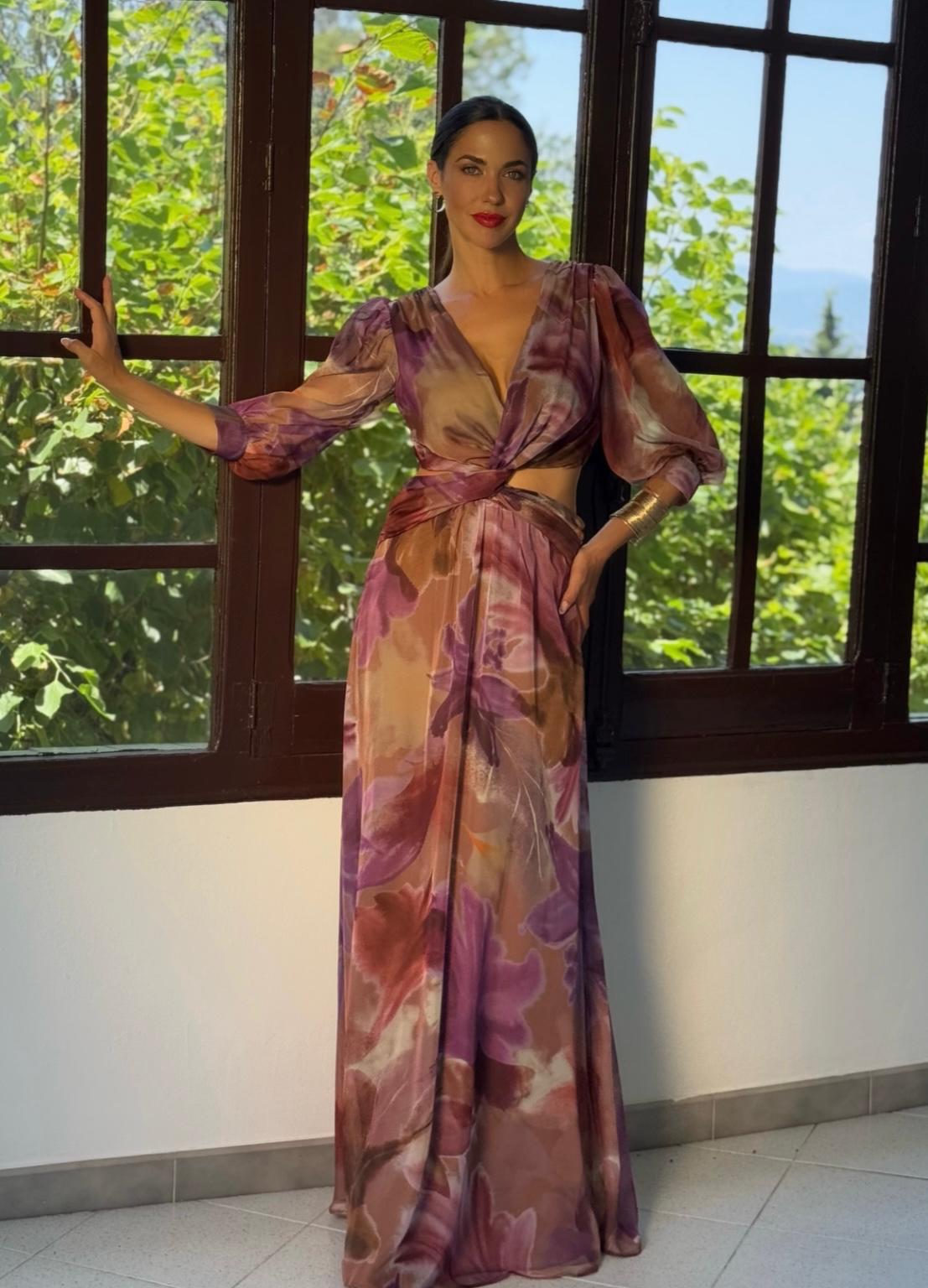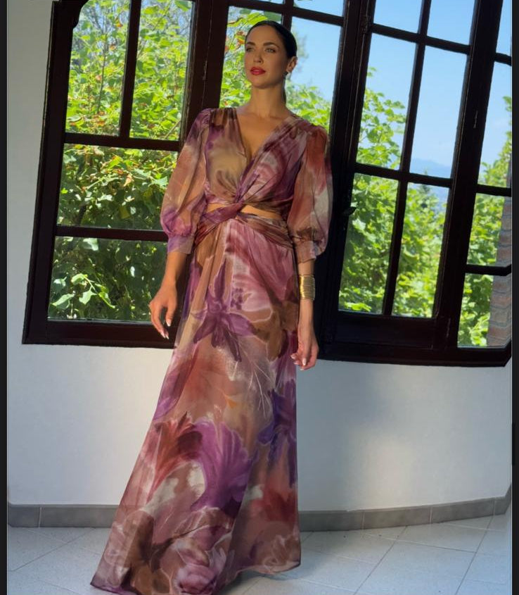 Dettagli: aperto sui fianchi, medaglione in vita a nodo tono su tono