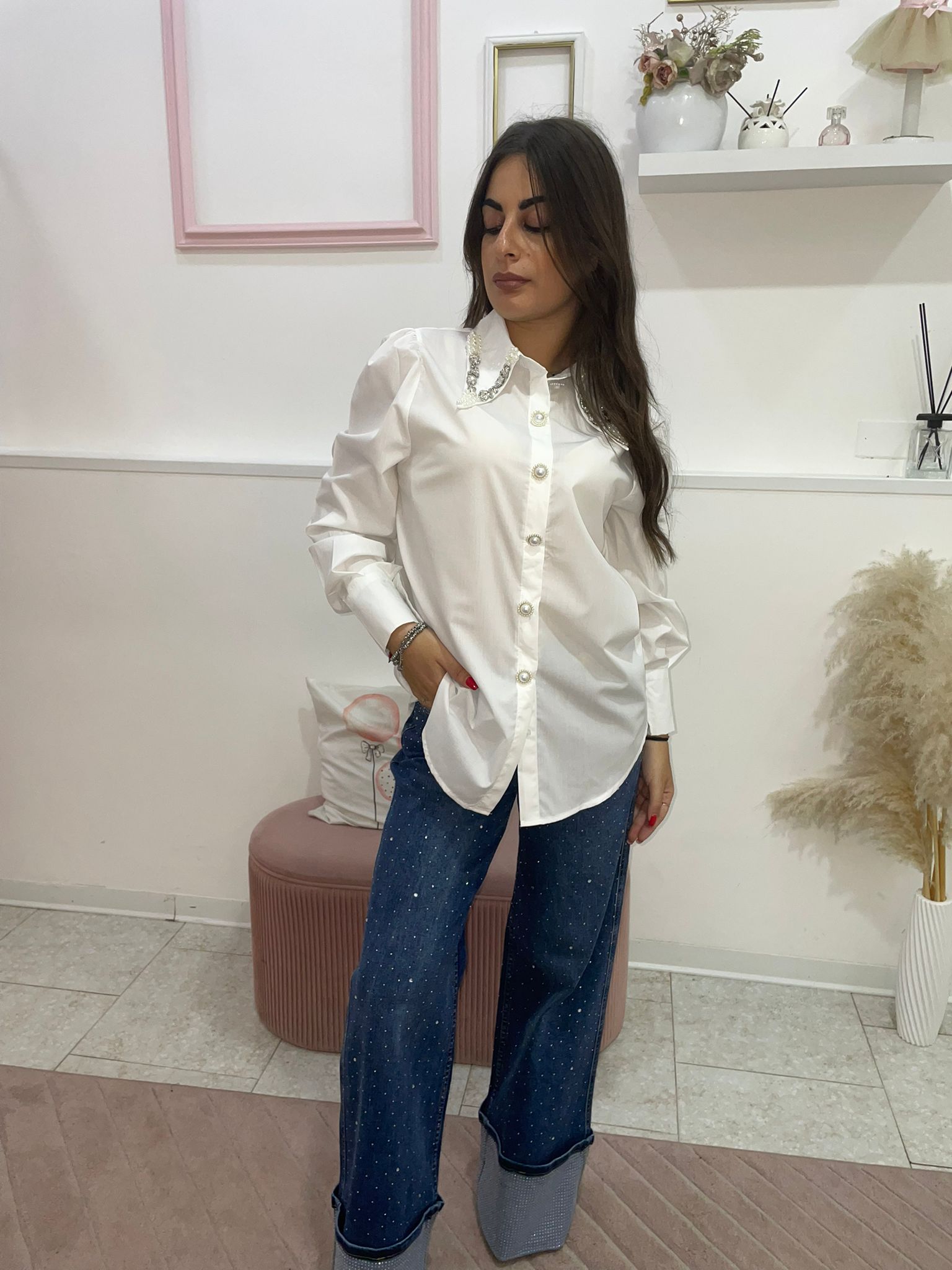 Camicia con collo gioiello