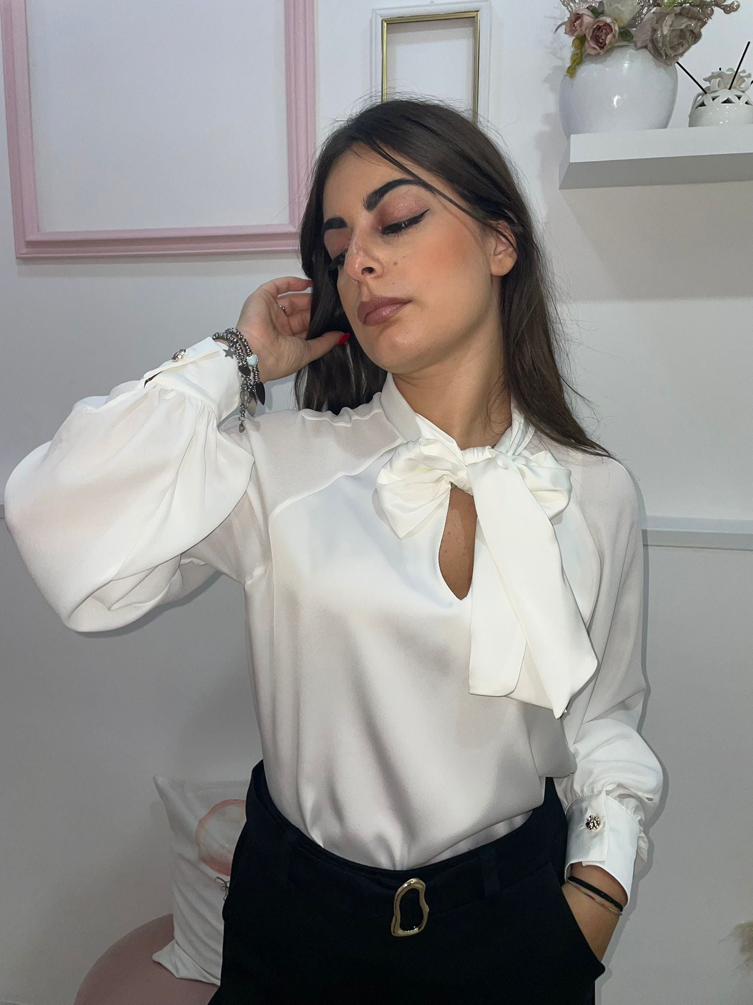 Dettagli : manica lunga ampia, bottone dorato sui polsini
