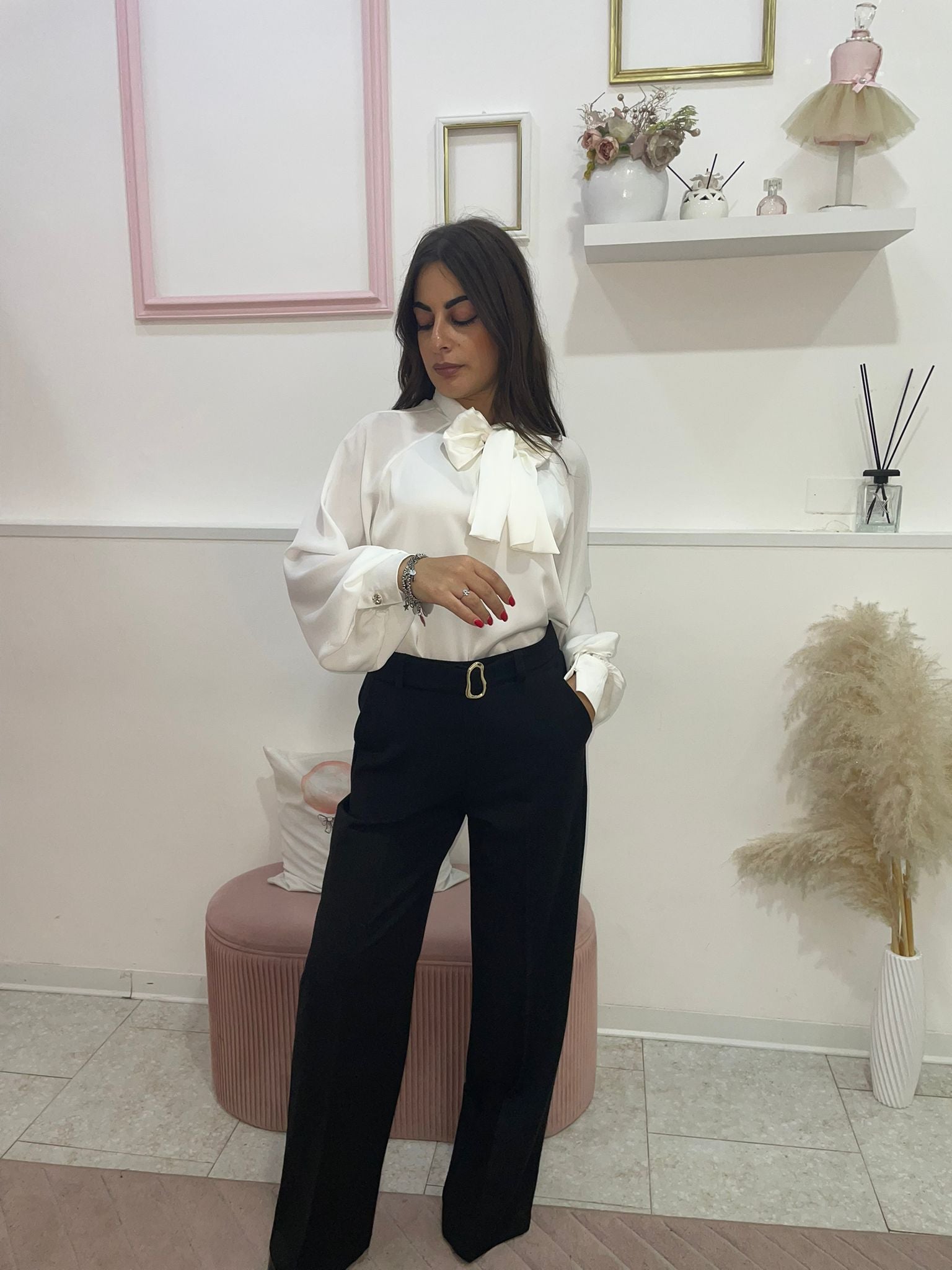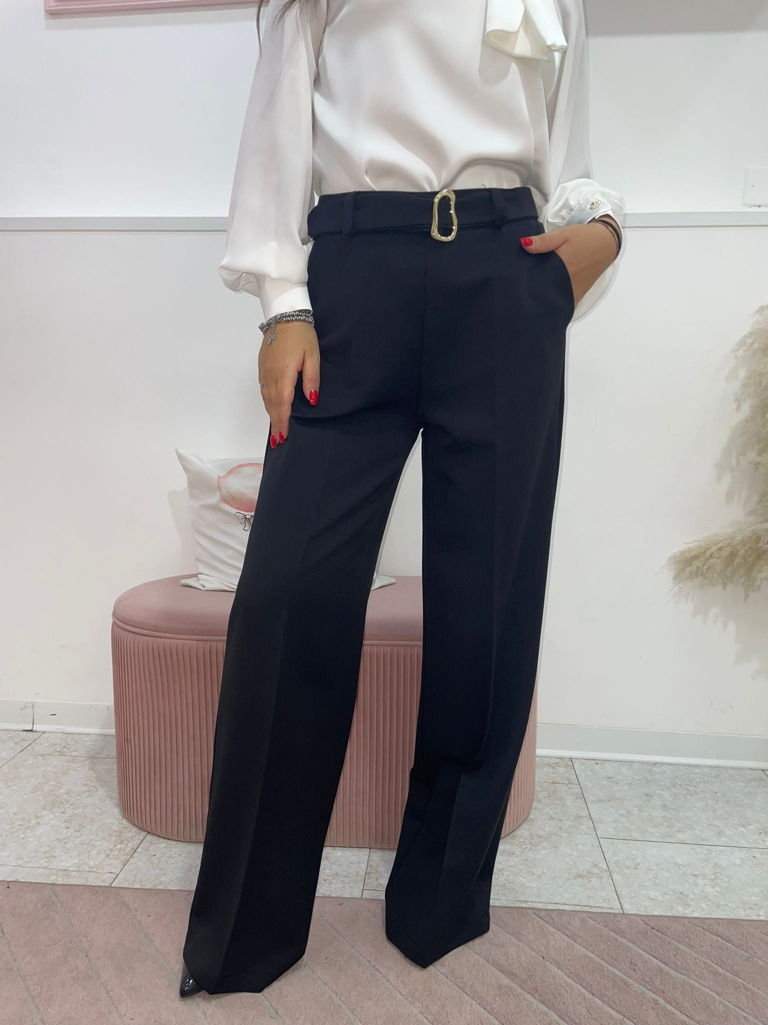 - Modello: a palazzo con fascia elastica in vita (senza zip e bottoni), finta cintura con medaglione sulla parte davanti