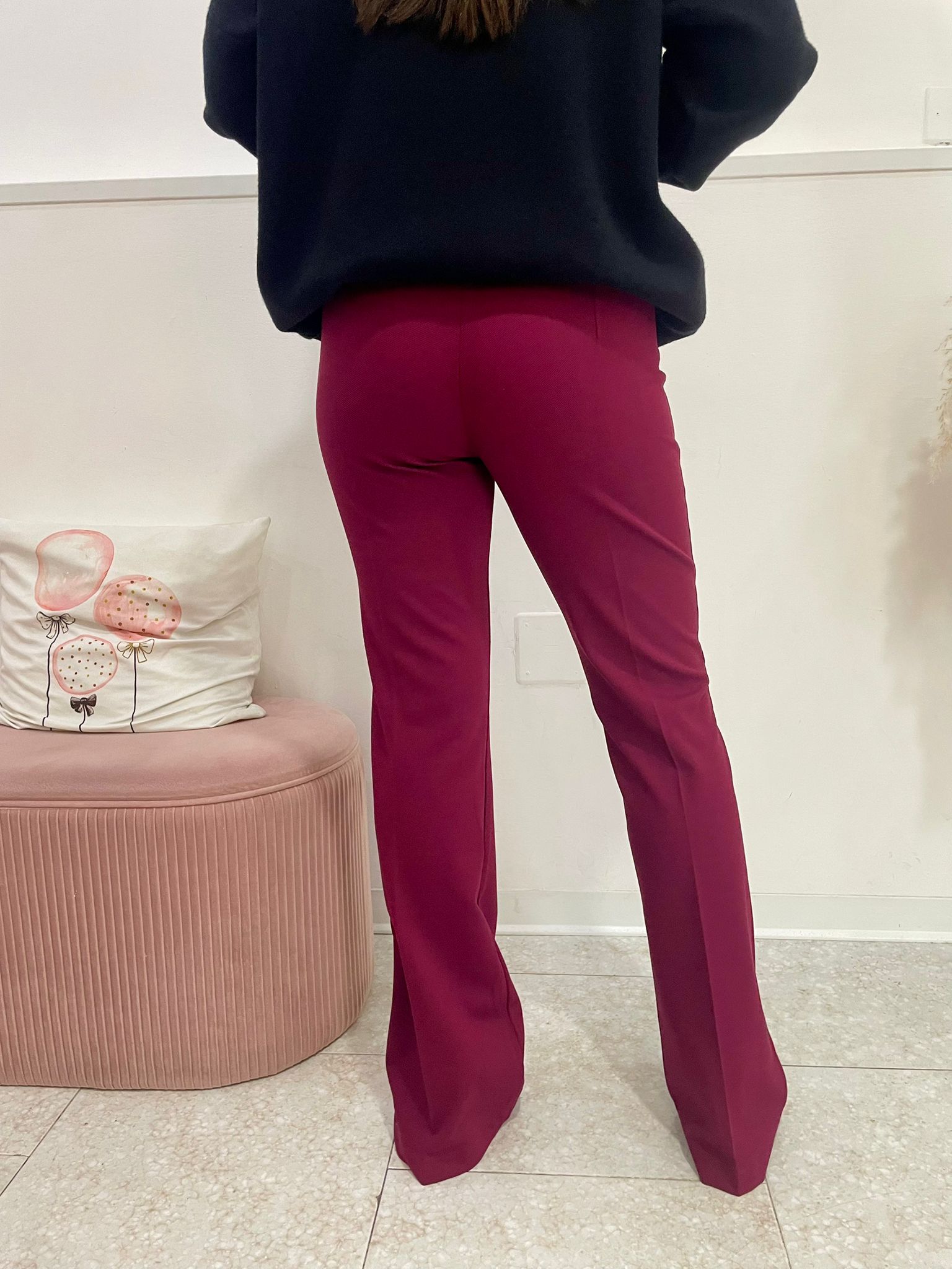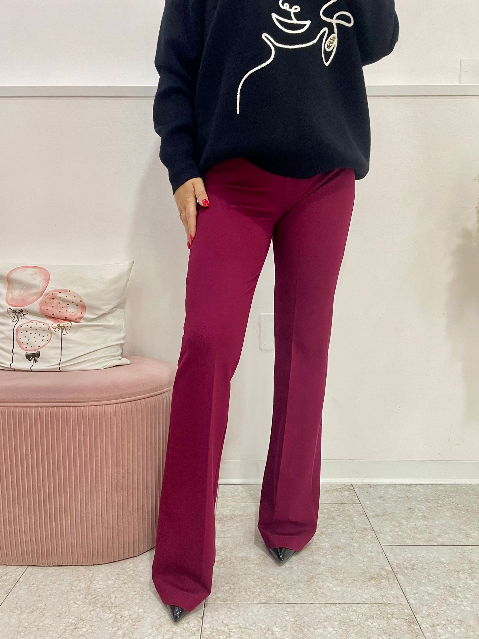 - Modello: a zampa, con fascia elastica in vita (senza zip e bottoni)